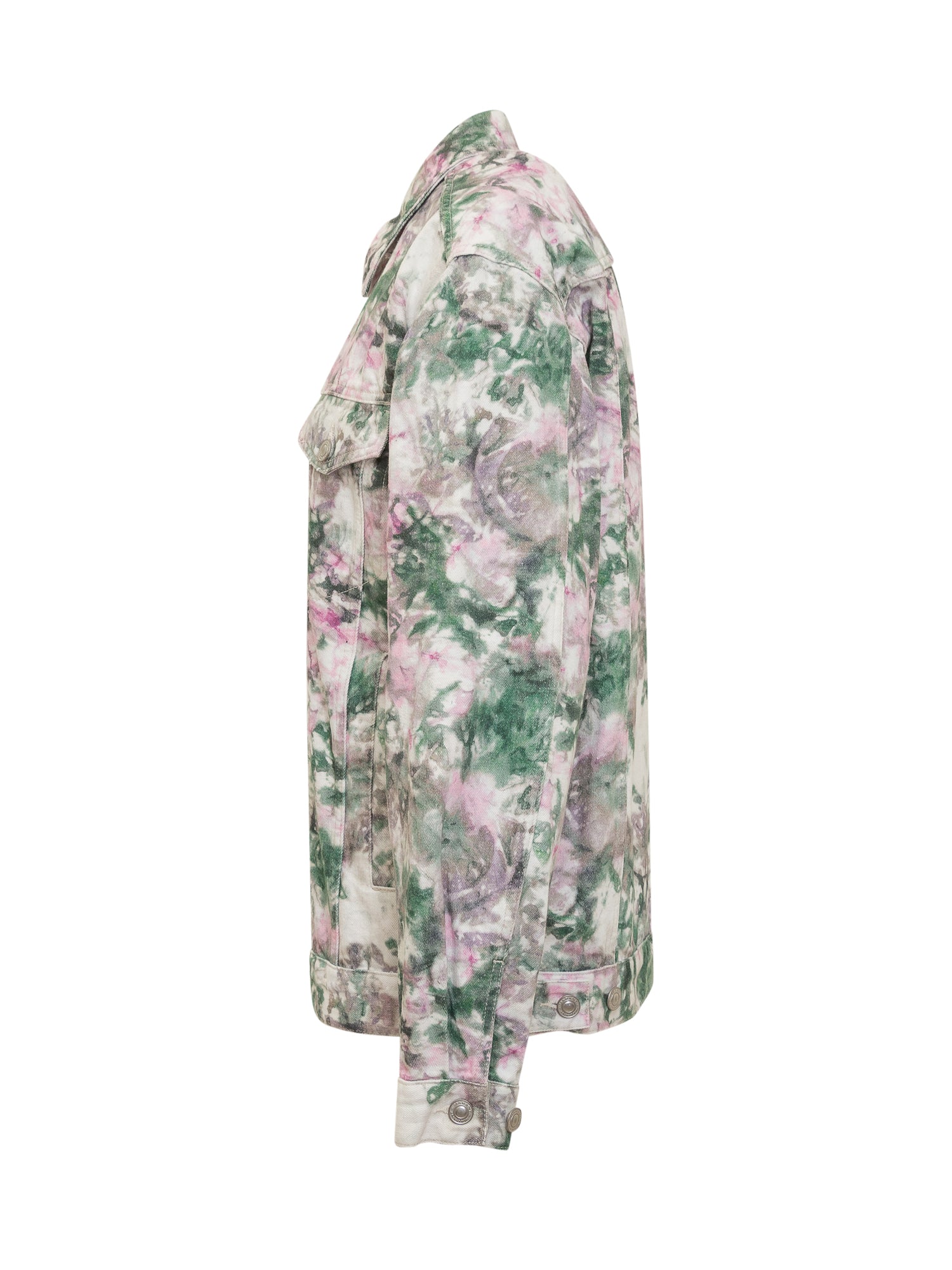 Giacca con colletto classico. Due tasche sul petto e due laterali. Chiusura con bottoni. Bottoni sui polsi. Stampa all over.