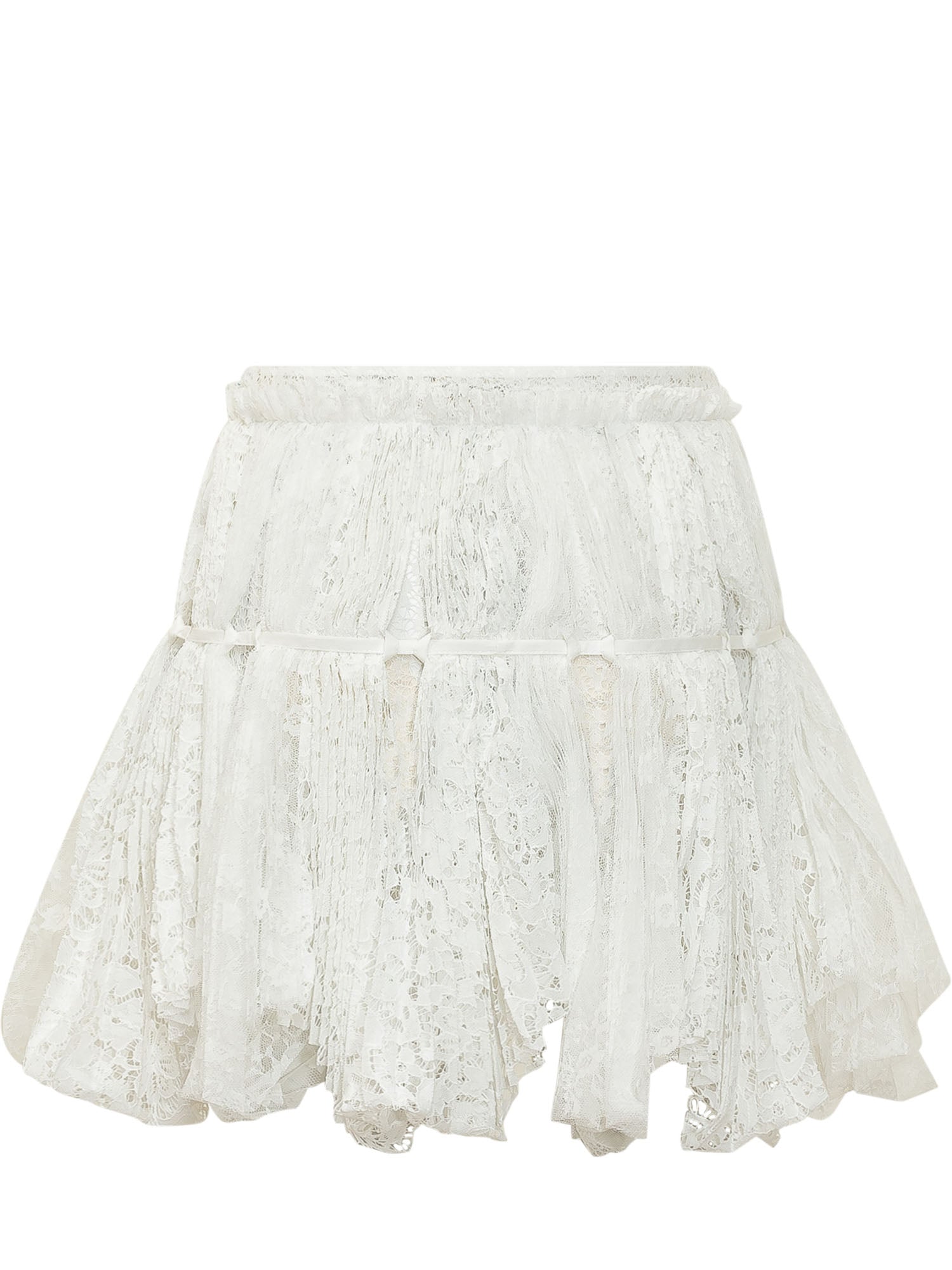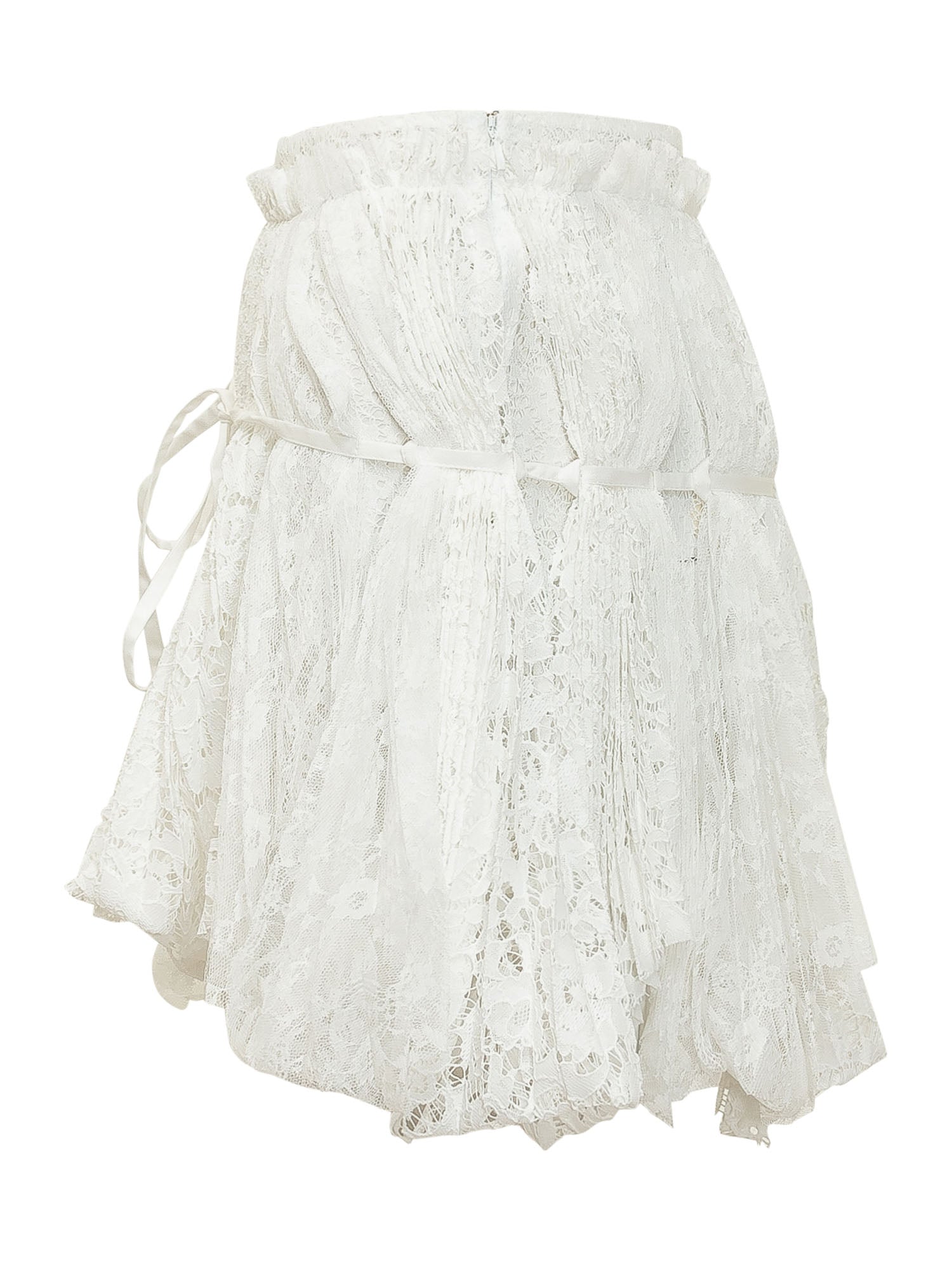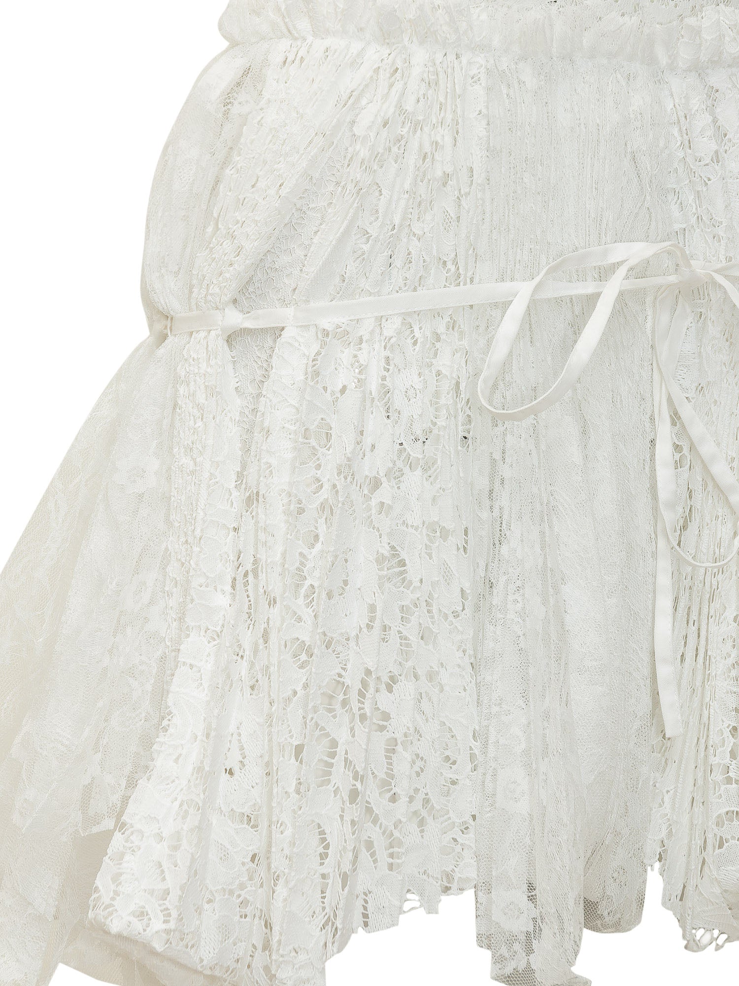 Gonna mini con lavorazione in pizzo, vita elasticizzata e cintura sottile, design leggero e fondo ondulato