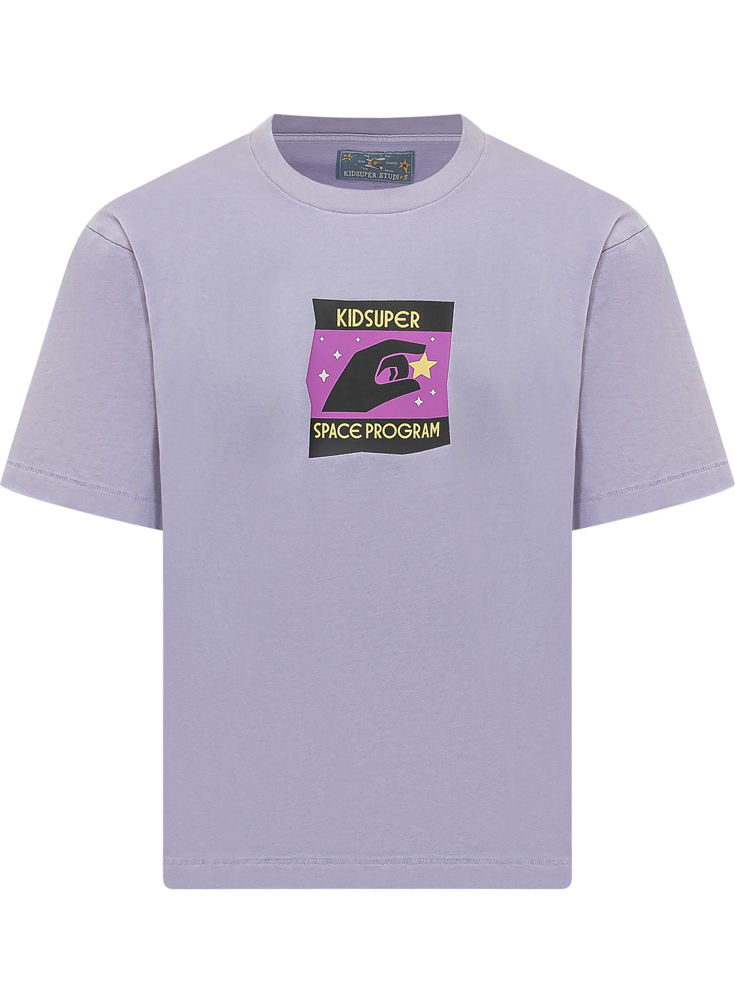 T-shirt a maniche corte con girocollo e stampa grafica frontale, design contemporaneo e vestibilità regolare