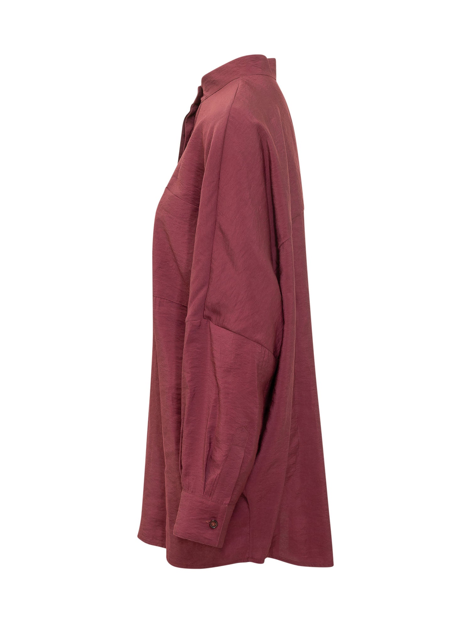 Camicia ampia a maniche lunghe con colletto coreano, linea morbida e chiusura frontale