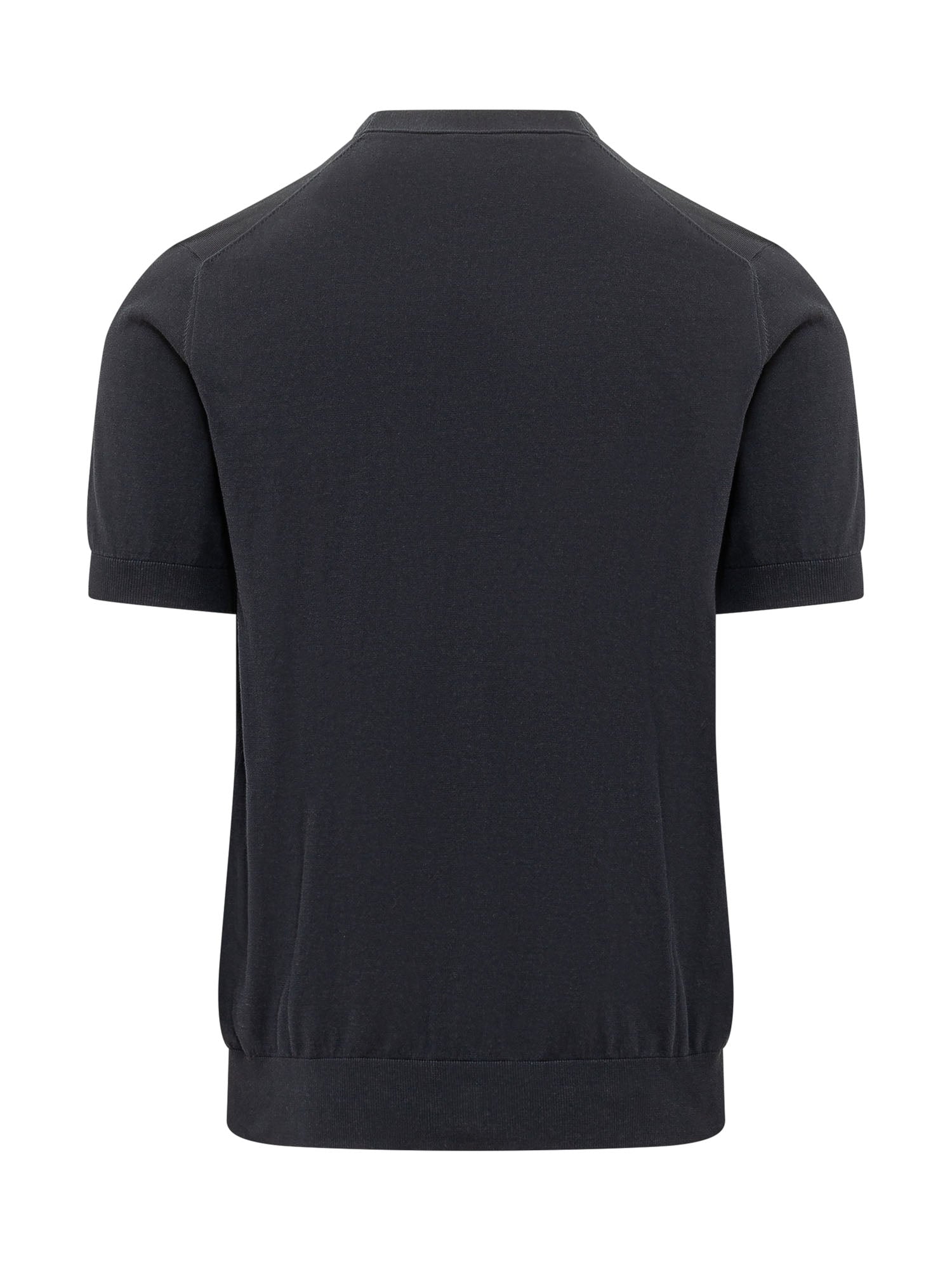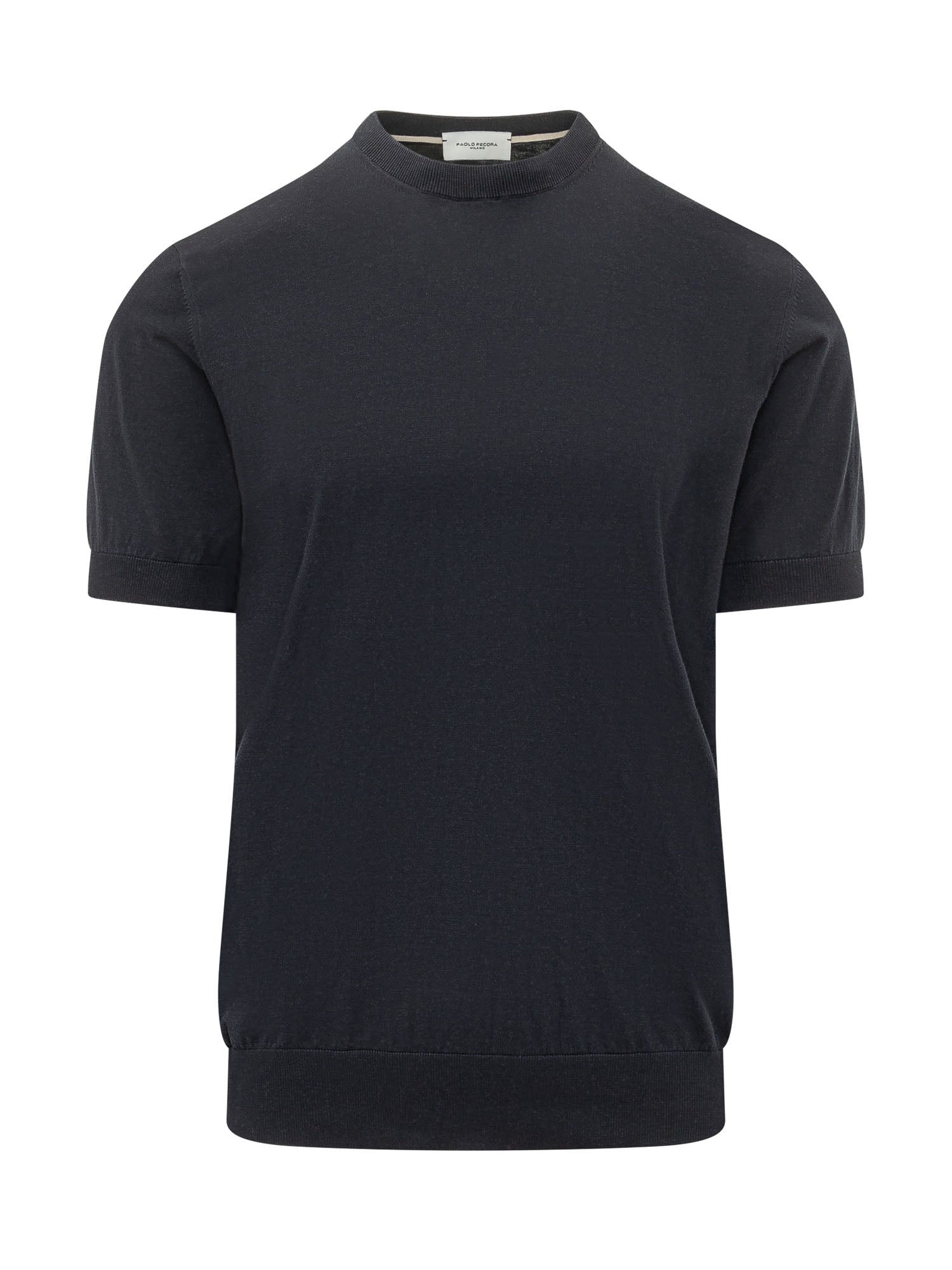 Maglia a maniche corte con girocollo, fondo e maniche con finitura a costine.