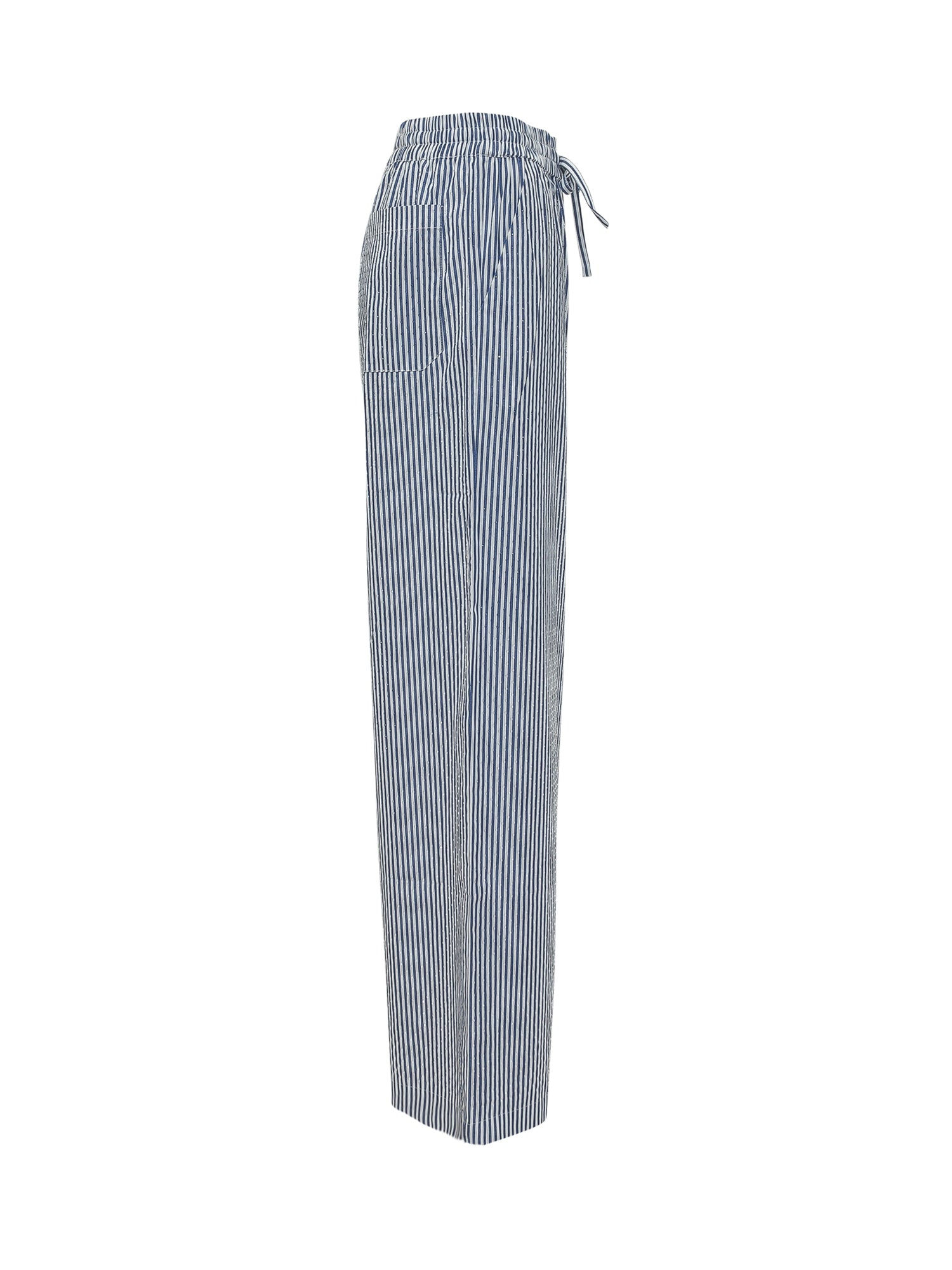 Pantaloni da donna a gamba larga, vita elasticizzata con coulisse, taglio comodo e leggero, motivo a righe.