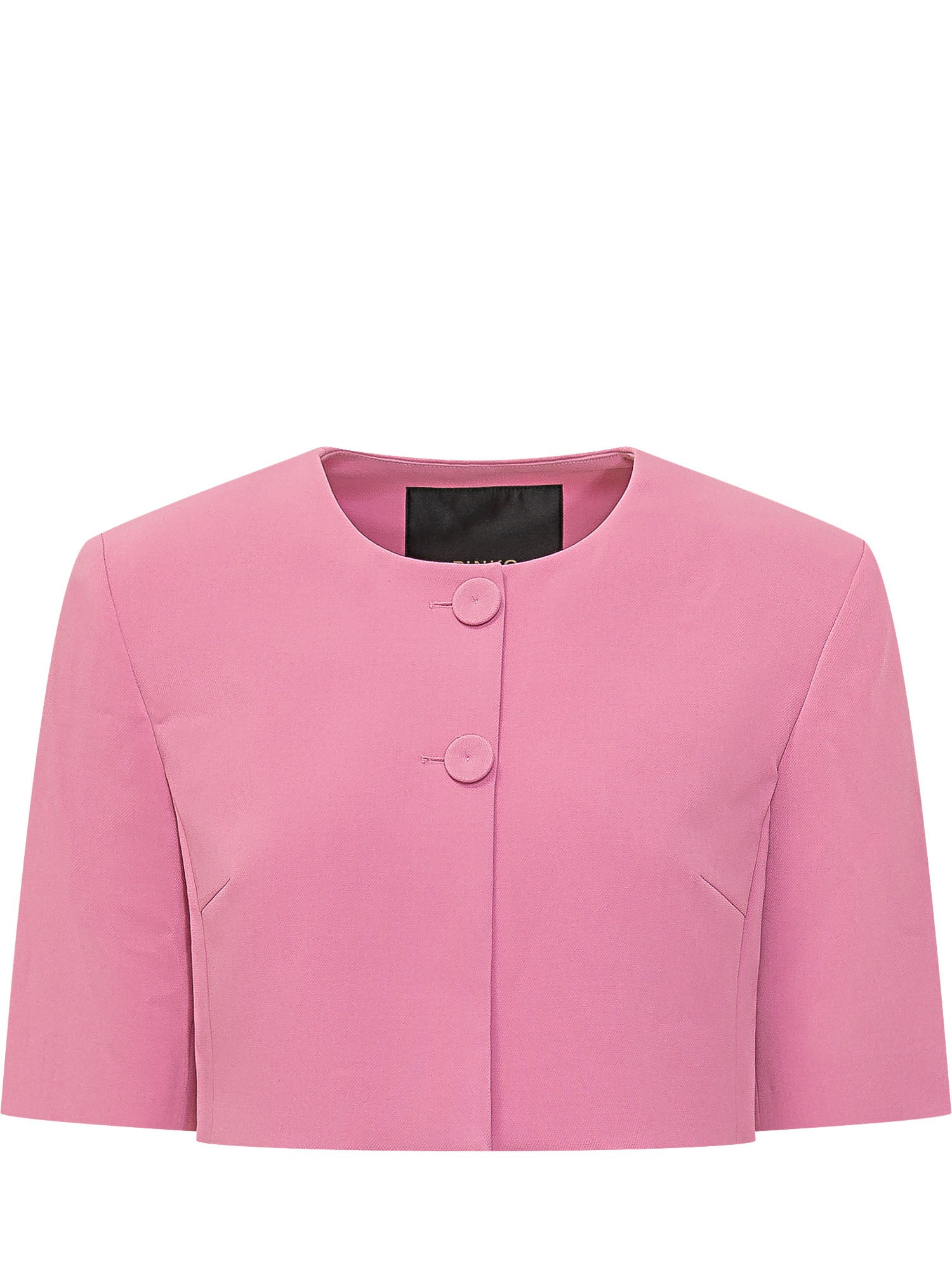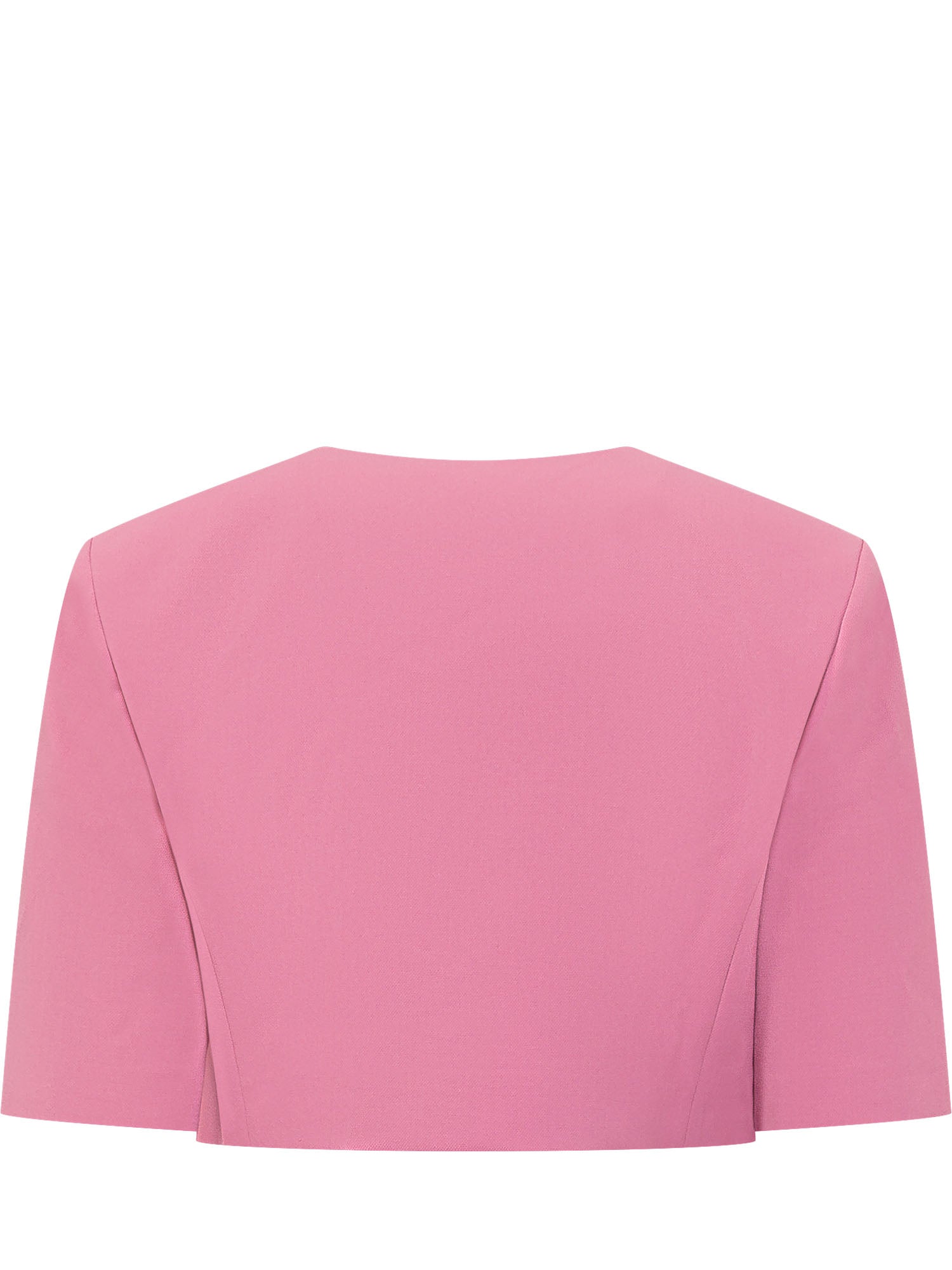 Spencer corto da donna con girocollo, chiusura con bottoni, maniche corte ampie.