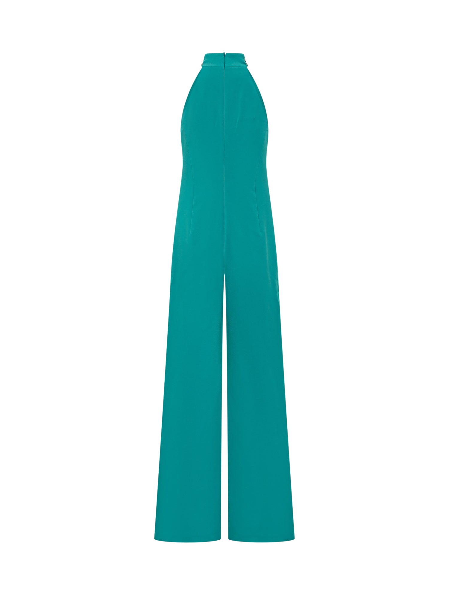 Tuta senza maniche con scollo halter e apertura posteriore. Gamba ampia e linea fluida lungo la lunghezza.