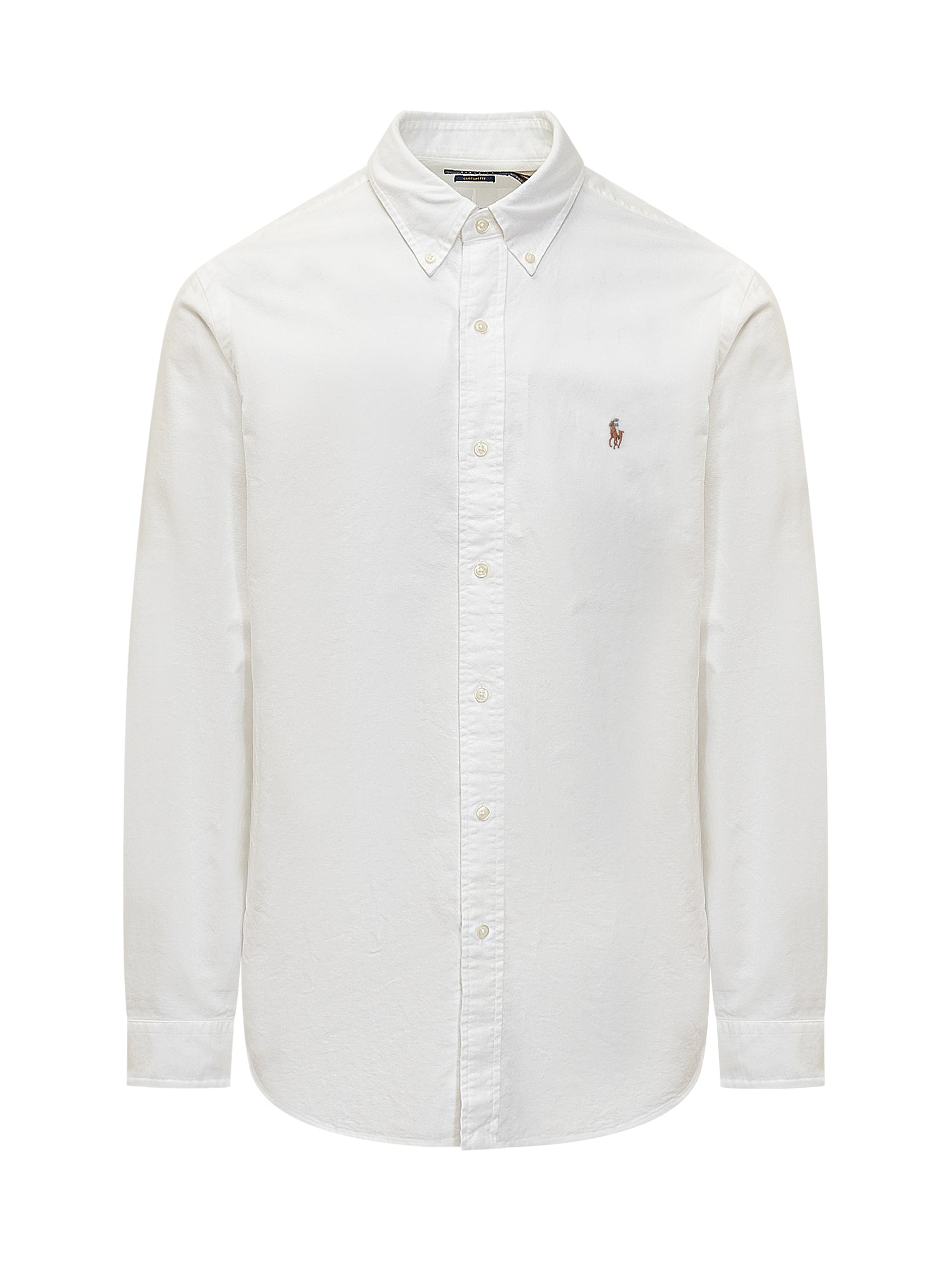 Camicia bianca in cotone. Maniche lunghe. Colletto classico. Polsi con bottone. Logo ricamato. Chiusura con bottoni.