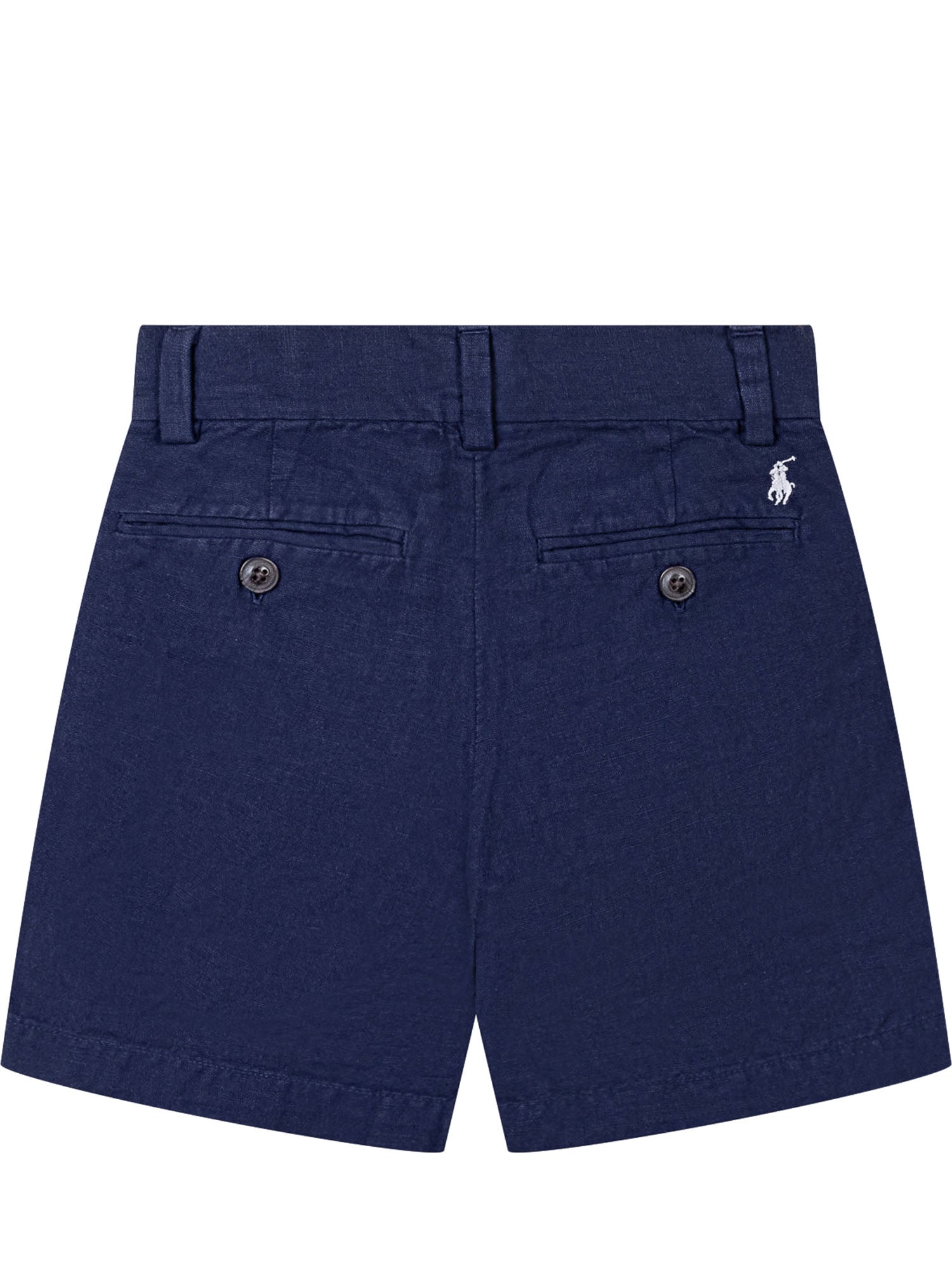 Bermuda bambino in tessuto leggero con chiusura a bottone, passanti per cintura e tasche laterali, ideali per un look estivo elegante e confortevole.
