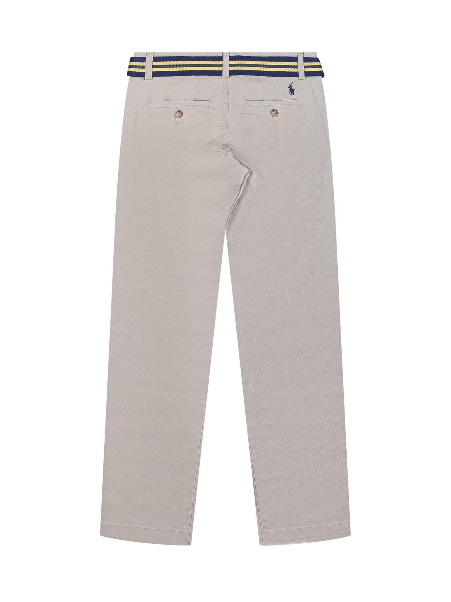 Pantaloni bambino modello Bedford in cotone con vita regolare, chiusura con zip e bottone, tasche laterali e cintura in tessuto a righe inclusa per un tocco sportivo e raffinato.