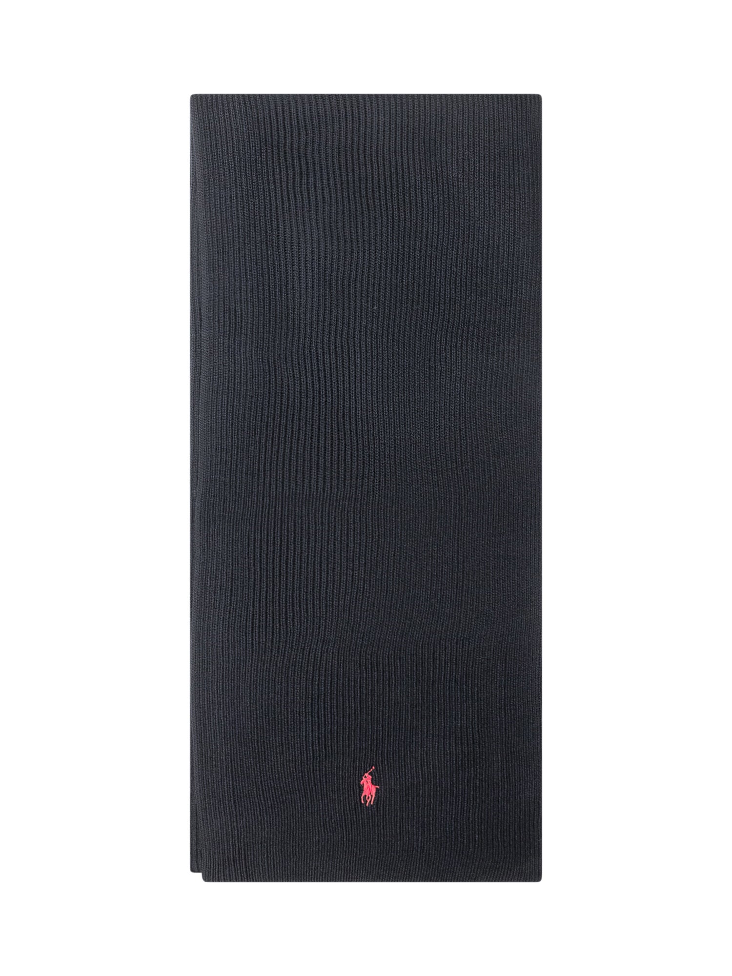 Sciarpa Polo Ralph Lauren in maglia nera con iconico logo ricamato rosa.