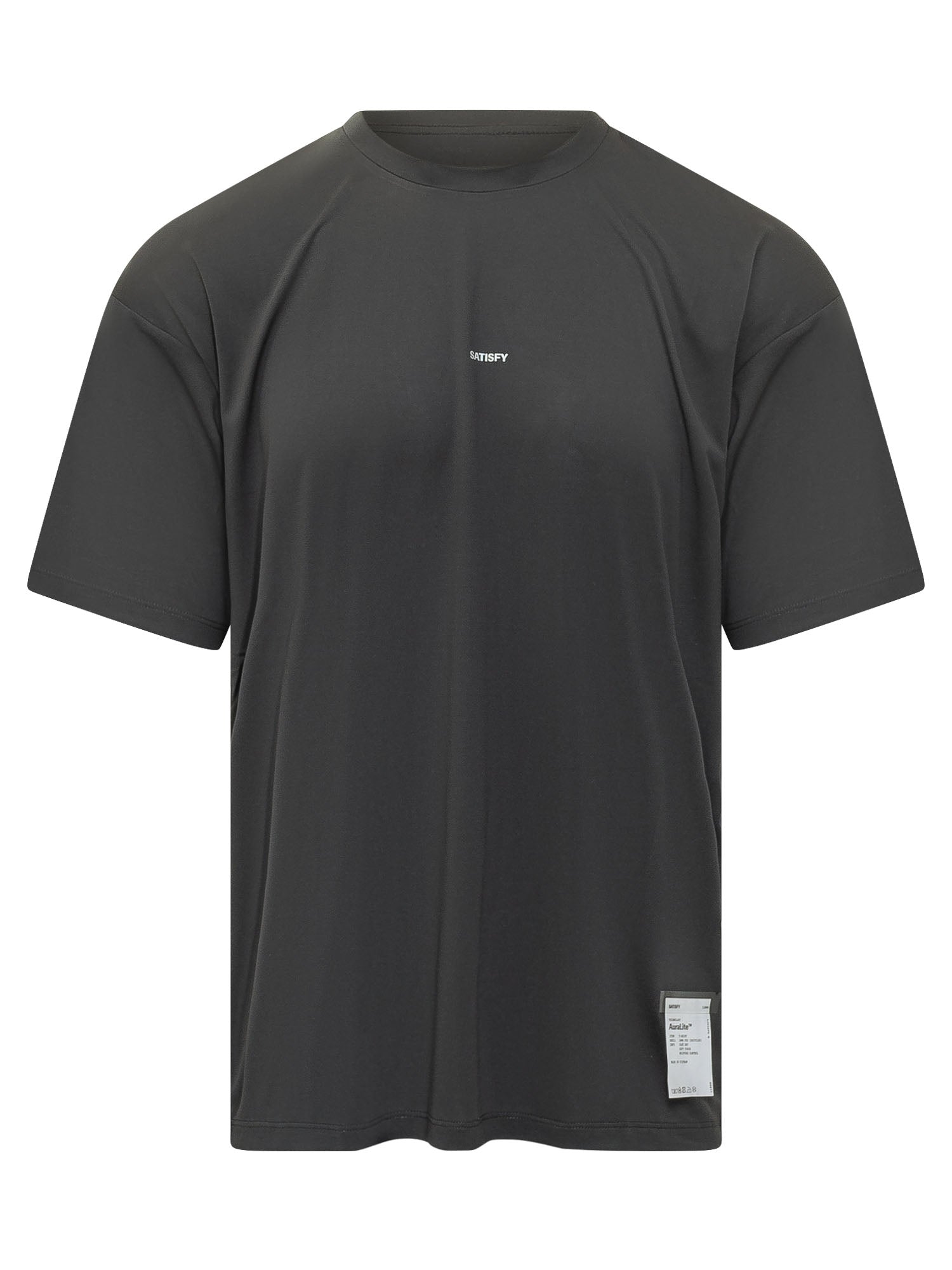 T-shirt a maniche corte con girocollo e logo frontale, design minimal