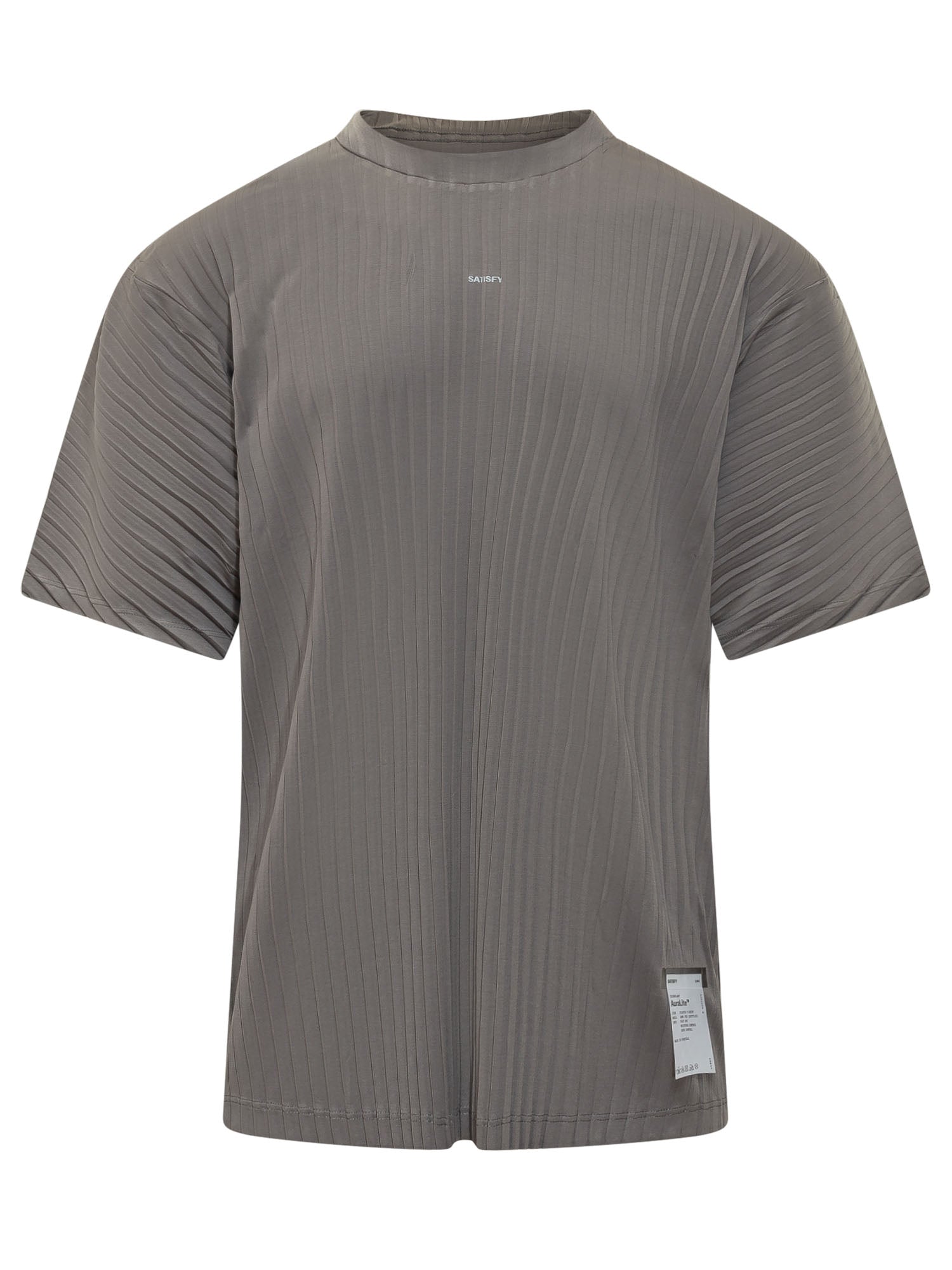 T-shirt a maniche corte con girocollo e texture a coste verticali, logo frontale visibile, design pulito e contemporaneo
