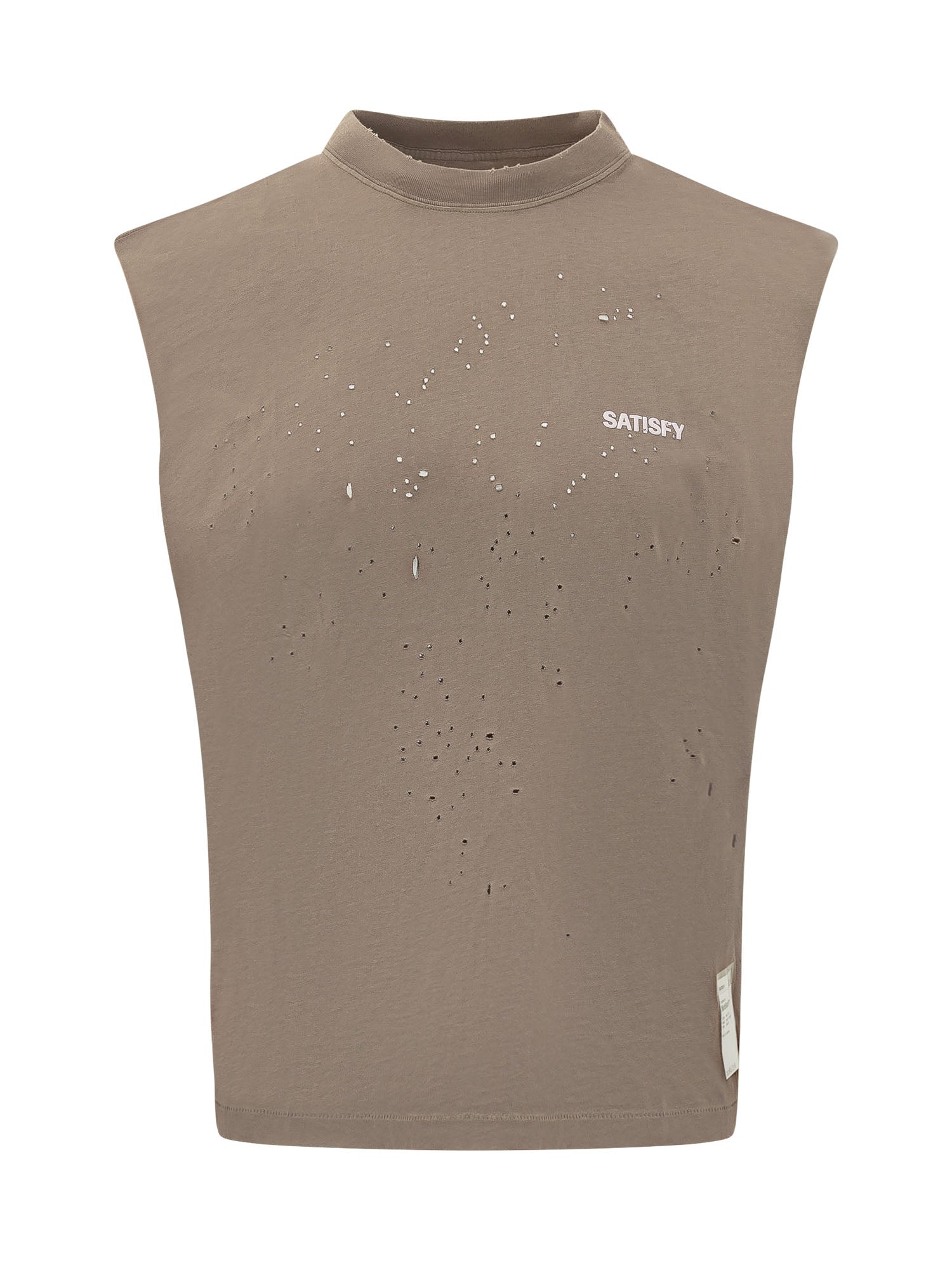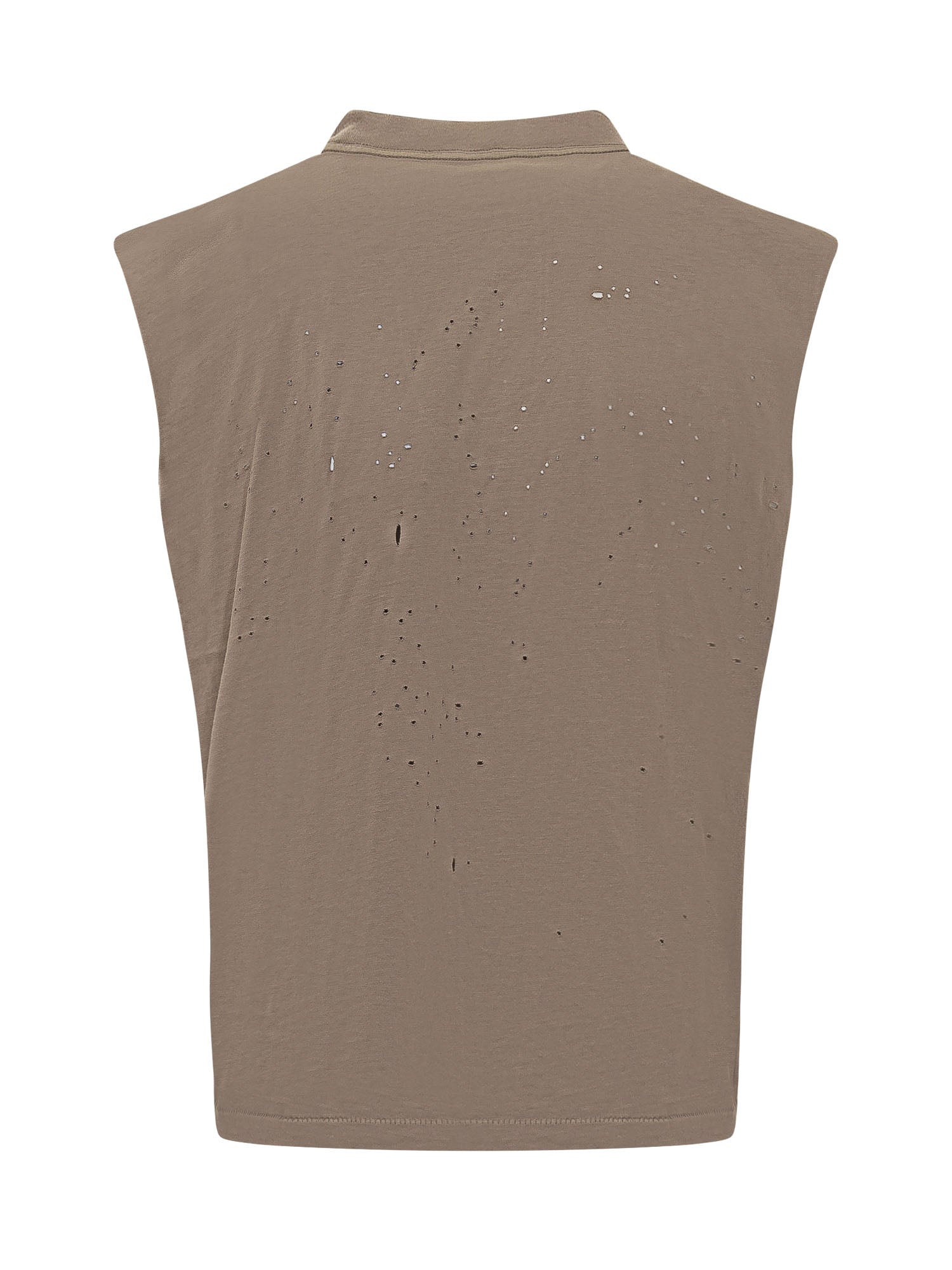 T-shirt senza maniche con girocollo, logo frontale e dettagli traforati all over