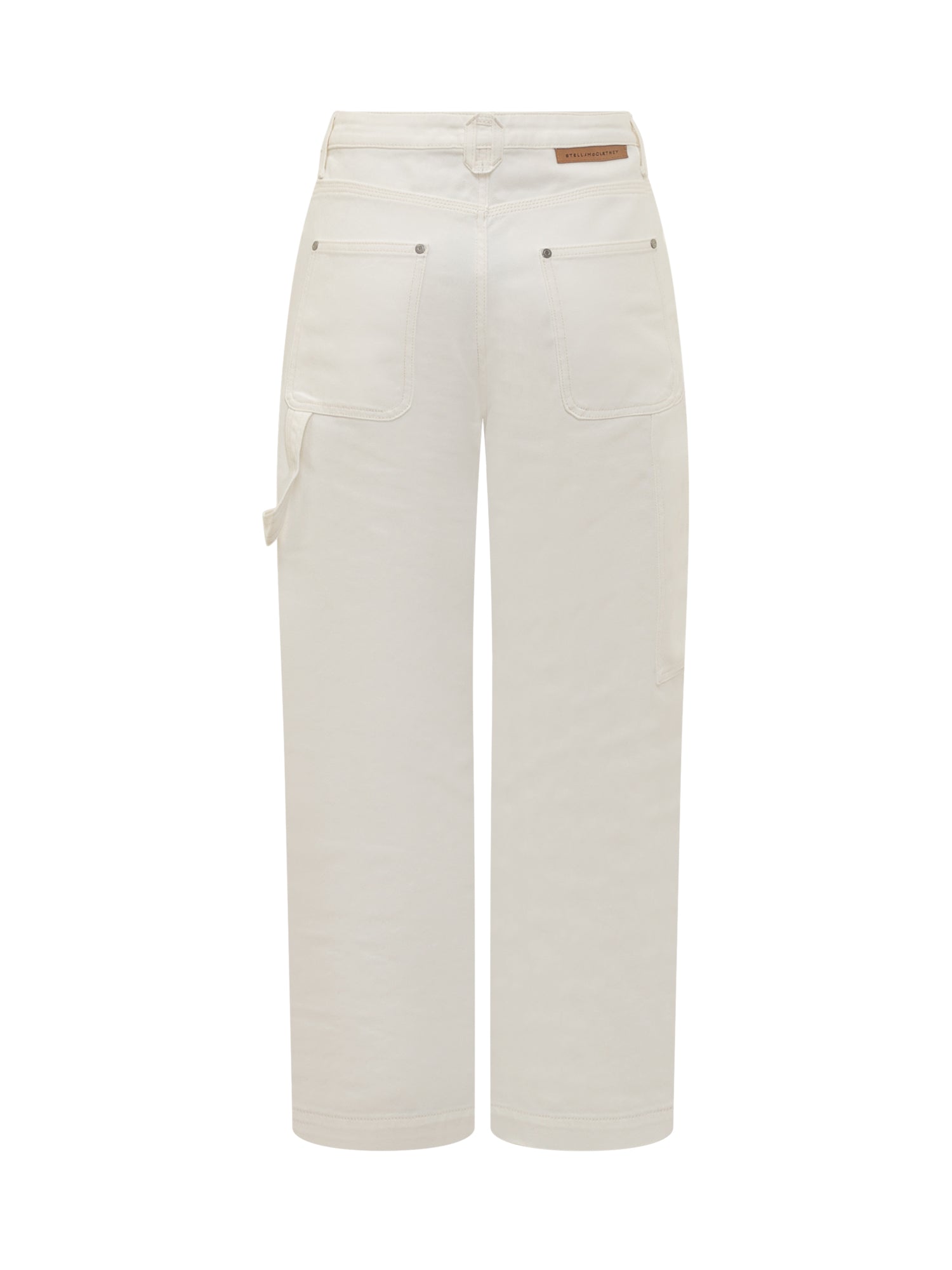 Jeans lunghi wide leg. Chiusura con bottone e zip. Passanti per cintura. Cinque tasche. Bicolore. Logo in metallo applicato sul davanti.