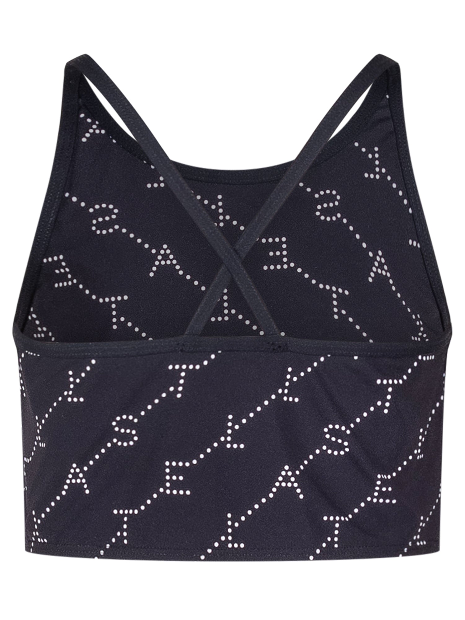Top sportivo con spalline larghe e scollo rotondo. Modello cropped con stampa logo all over a contrasto e vestibilità aderente. Ideale per attività sportive e tempo libero.