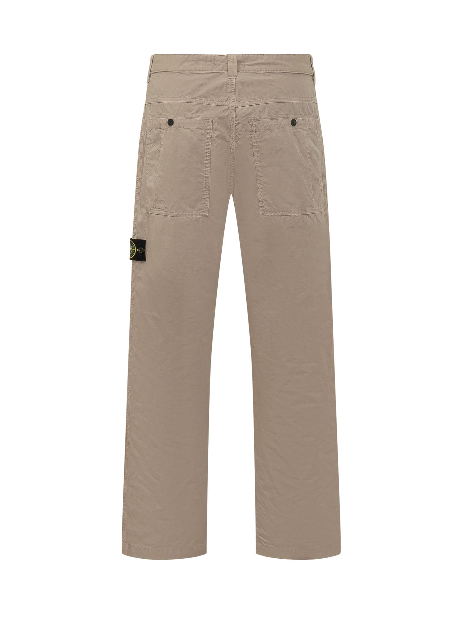 Pantaloni da uomo in tessuto leggero con vestibilità regolare e gamba dritta. Il modello presenta chiusura con bottone e zip, tasche laterali oblique, passanti per cintura e iconico patch logo applicato sulla gamba.