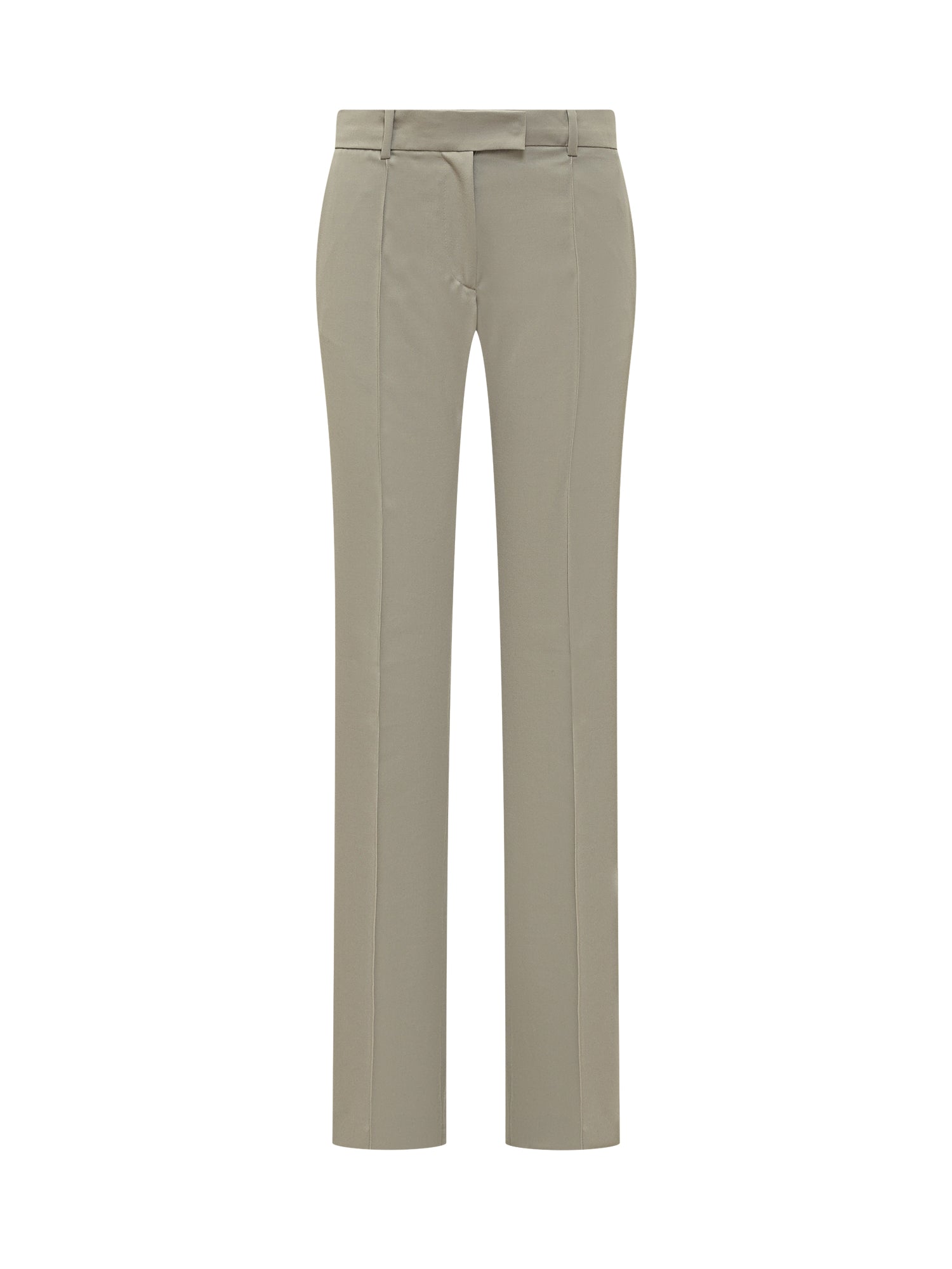 Pantaloni sartoriali a gamba dritta con vita strutturata, pince frontali e chiusura con zip e gancio. Un modello versatile e raffinato.